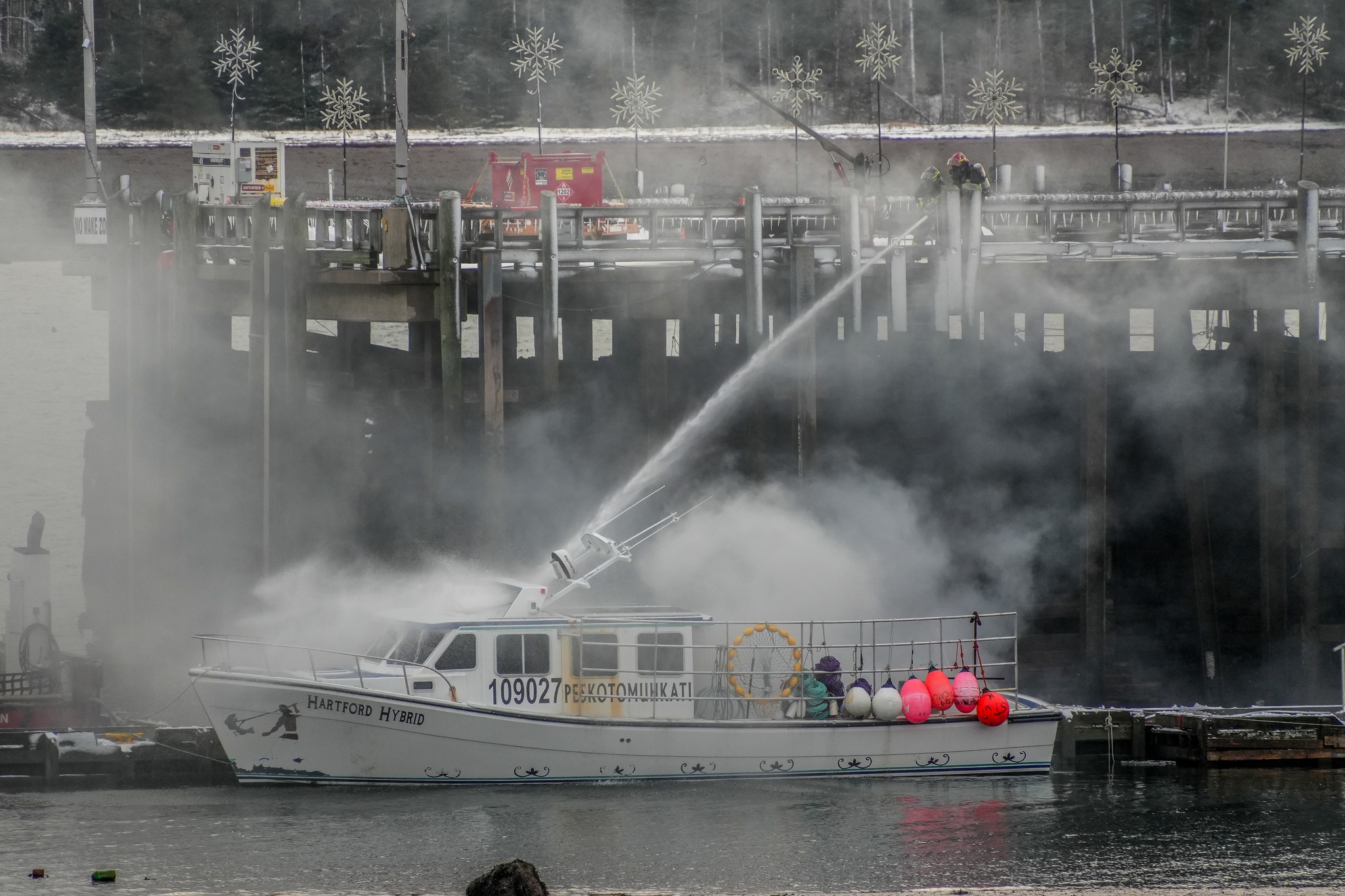 Fire Chief Kevin Theriault says crews responded to a call for a boat fire at the town wharf on Wednesday, December 3, at around 3:10 pm.