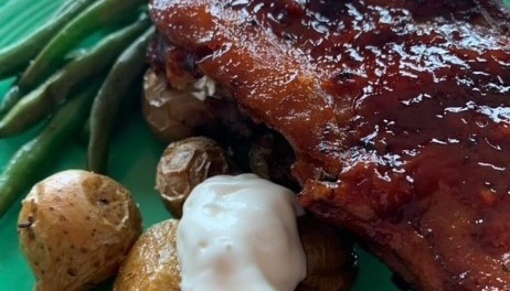 - Place pieces meat side up in a 400 degree oven for 15-20 min until sauce is caramelized. Done!