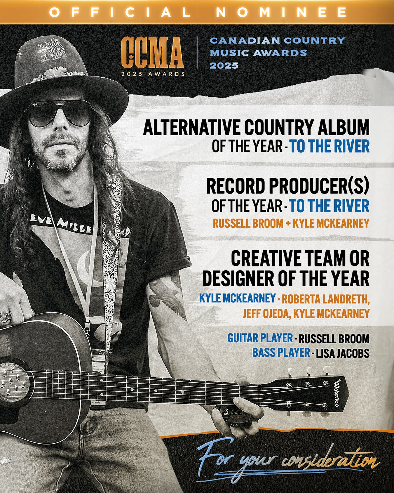 Kyle has released a trio of highly acclaimed albums. He a Canadian Country Music Association Award winner and multi time nominee. He is also a Canadian Folk Music Award winner and multi-time nominee. Kyle has even been short-listed for a GRAMMY nomination!
