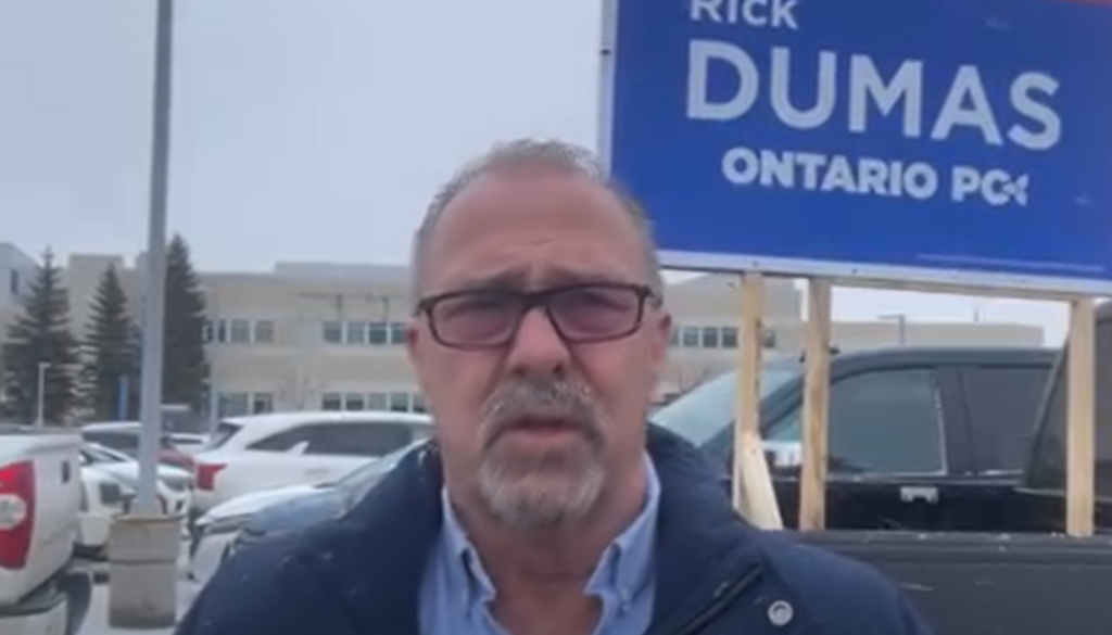 Dumas ran as a Progressive Conservative for the Thunder Bay-Superior North seat in the provincial legislature last year and placed second behind NDP incumbent Lise Vaugeois.