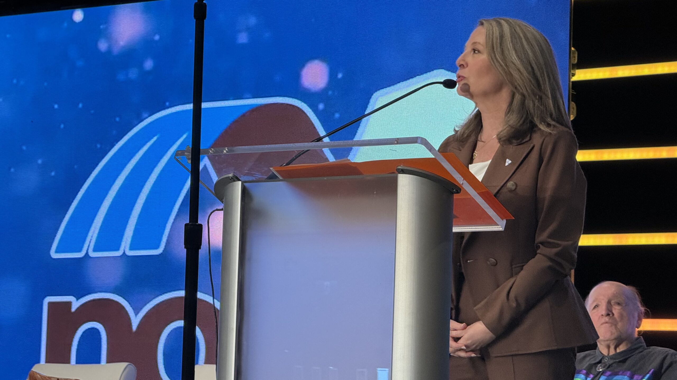 Ontario NDP leader Marit Stiles used her speaking time to appeal to the municipal leaders in the room to work with her party, arguing that the PC’s were failing to deliver, despite the occasional success at working across party lines with the opposition.