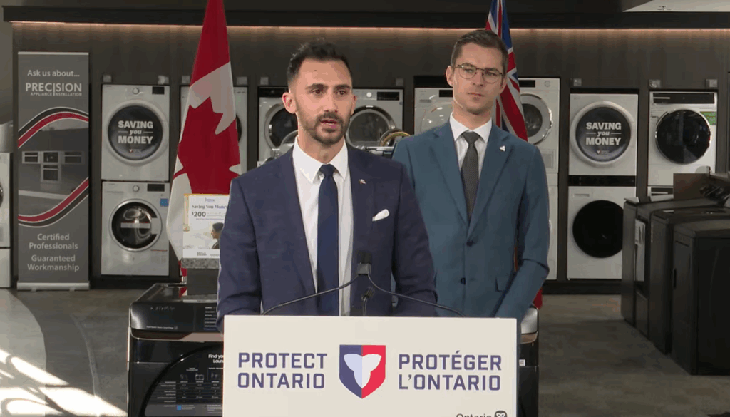 “From laundry machines, dishwashers, stoves, fridges and freezers, we’re putting money back in your pockets ahead of the holidays, designed to incentivize economic growth, help support reduction of costs, and to create jobs for the people of Ontario,” says Lecce.